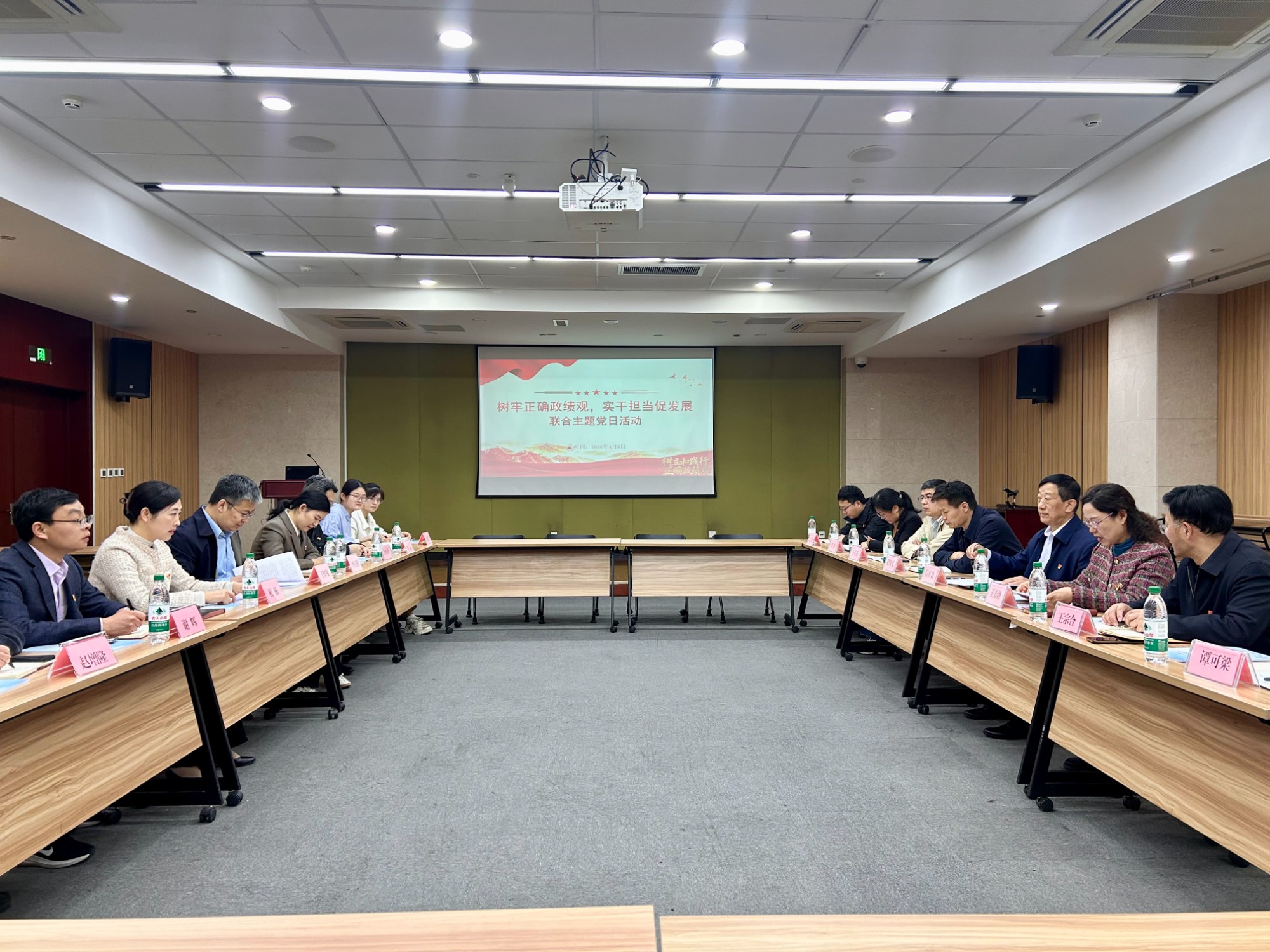 为深入学习贯彻习近平新时代中国特色社会主义思想,进一步树牢正确政绩观,凝聚实干担当、推动发展的强大合力,4月8日上午,山东省机关事务局工程项目管理处党支部、山东省人防定额与质监站党支部、医院第六党总支第九党支部,以 “树牢正确政绩观 实干担当促发展” 为主题,联合开展主题党日活动。