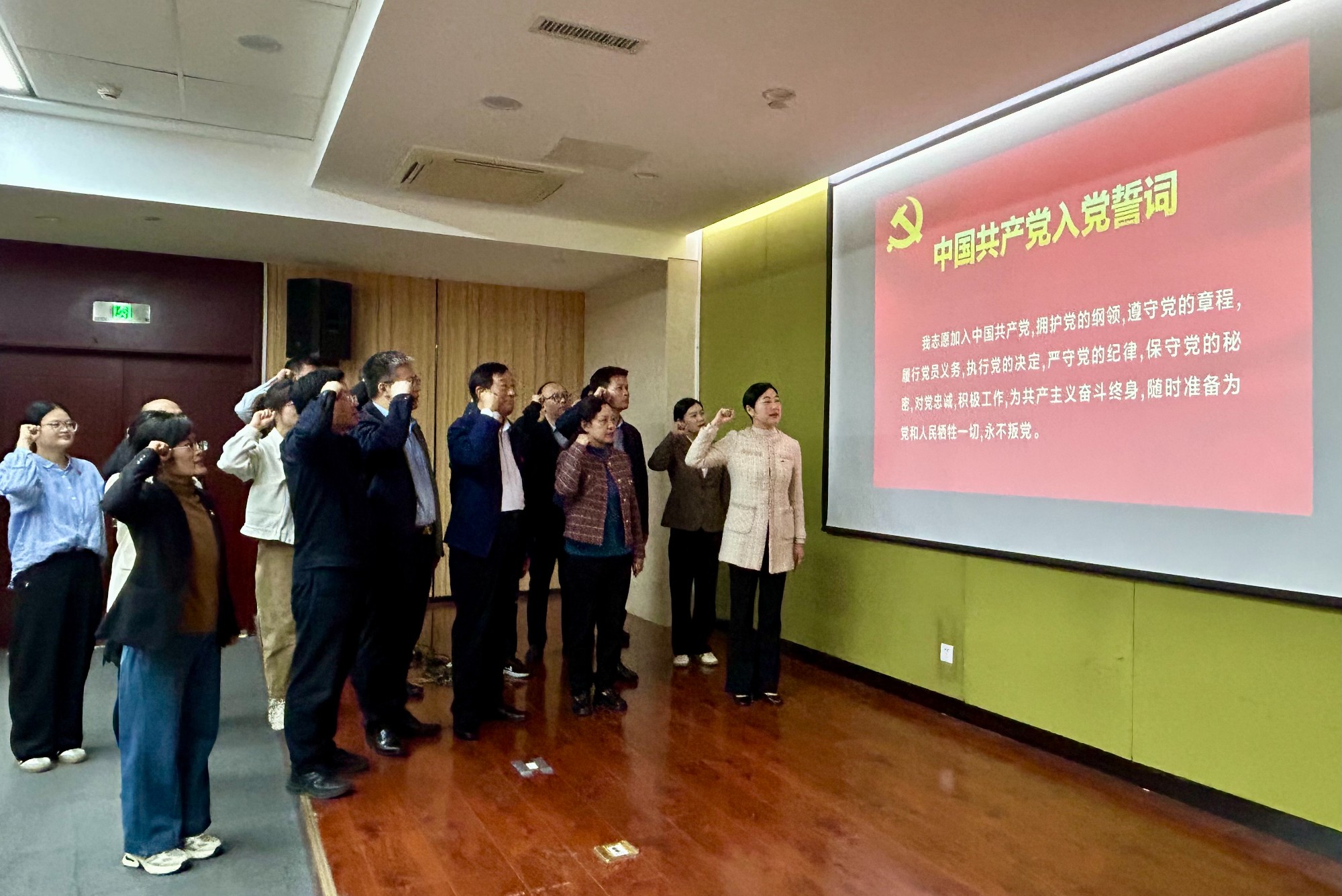 重温誓词守初心。“我志愿加入中国共产党,拥护党的纲领,遵守党的章程……” 在第六党总支书记杜杨同志的领誓下,全体党员面向党旗,高举右拳、庄严宣誓。铿锵有力的誓言,重温了入党时的初心使命,进一步坚定了党员干部听党话、跟党走、为党和人民事业不懈奋斗的理想信念。