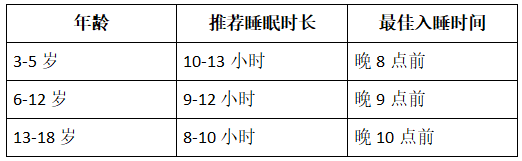 保证睡眠时长:见下表