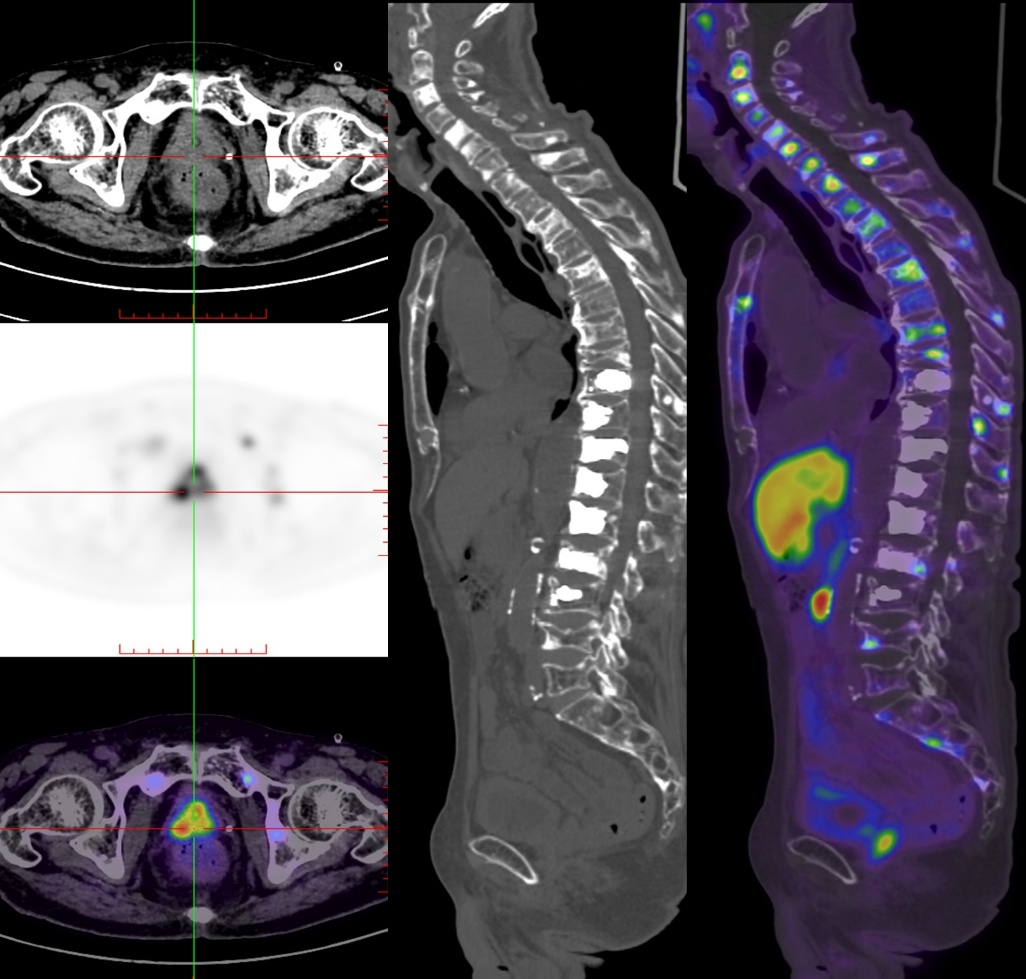 首例接受¹⁷⁷Lu-PSMA(镥[¹⁷⁷Lu]特昔维匹肽注射液)的患者为一位78岁前列腺癌伴全身多发骨转移的患者,在经历内分泌治疗、化疗等多线治疗后,疾病仍逐渐进展,处于转移性去势抵抗性前列腺癌(mCRPC)阶段。