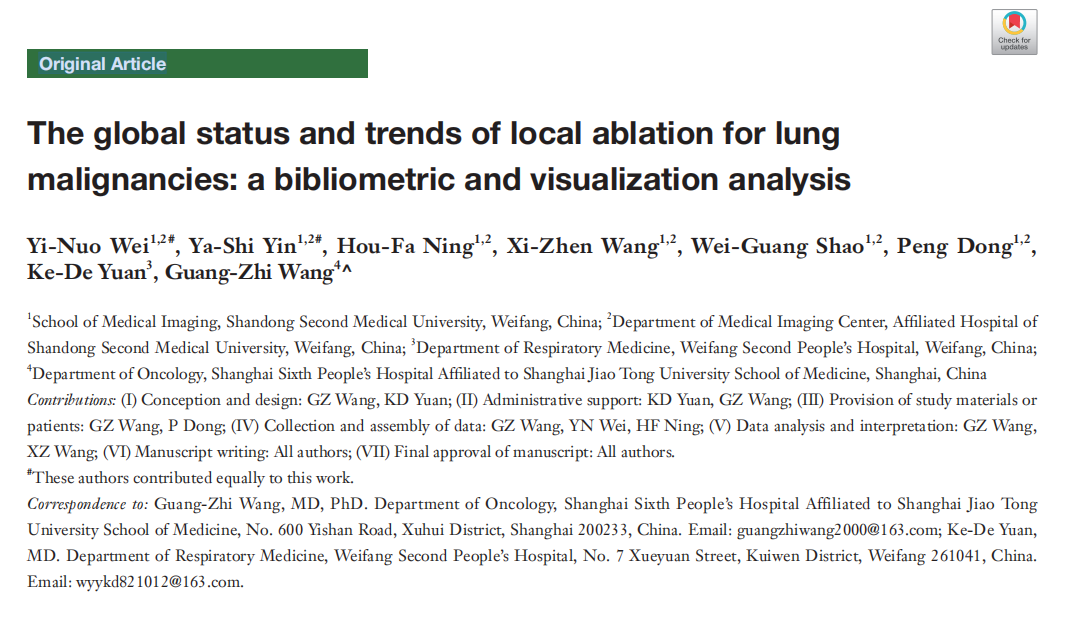全球领跑!肿瘤中心叶欣团队在肺肿瘤微创消融研究领域实现学术引领