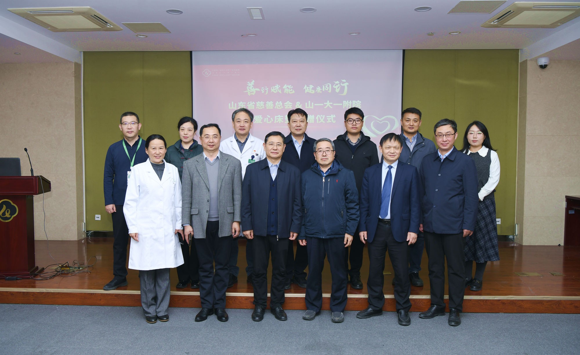 11月18日下午,“善行赋能 健康同行” 爱心床垫捐赠仪式在山一大一附院(省千佛山医院)举行。省民政厅原一级巡视员、省慈善总会驻会副会长冯建国,省民政厅原二级巡视员、省慈善总会副会长尹绍强,省慈善总会办公室主任、秘书长刘哲,宣传与会员联络部刘海,募捐救助部部长孟冰,项目部部长尹颖欣,山一大一附院党委副书记张光,党委委员、副院长王省携财务处、医务处、护理部、医学工程部等职能部门负责人及临床一线科主任及护士长代表共计30余人参加仪式。仪式由王省主持。