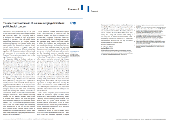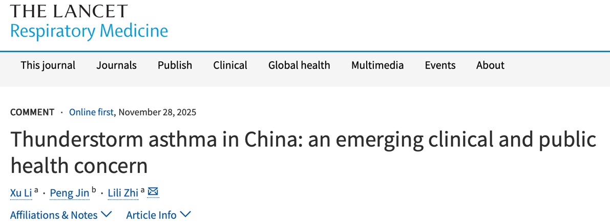 柳叶刀子刊!过敏性疾病科团队发表中国雷暴哮喘重要评论文章