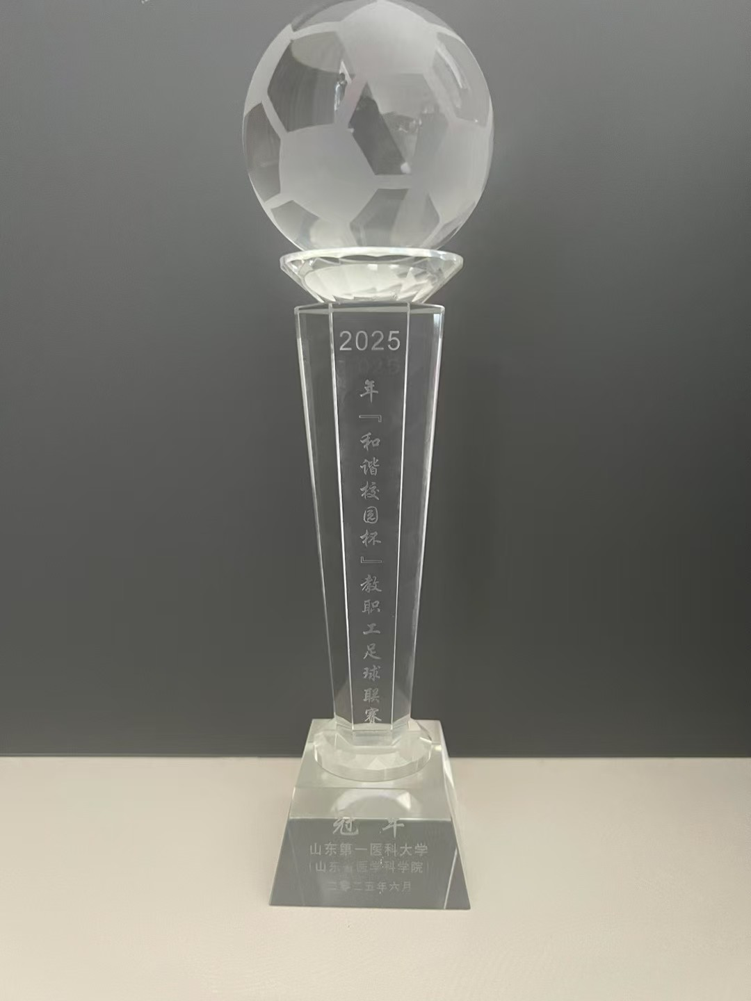 4月,在校(院)工会主办的第四届“和谐校园杯”教职工足球联赛中,我院足球队发扬顽强拼搏的精神,经过激烈角逐,最终荣获冠军。这项赛事作为校(院)传统体育项目,吸引了各工会分会和附属医院的积极参与。