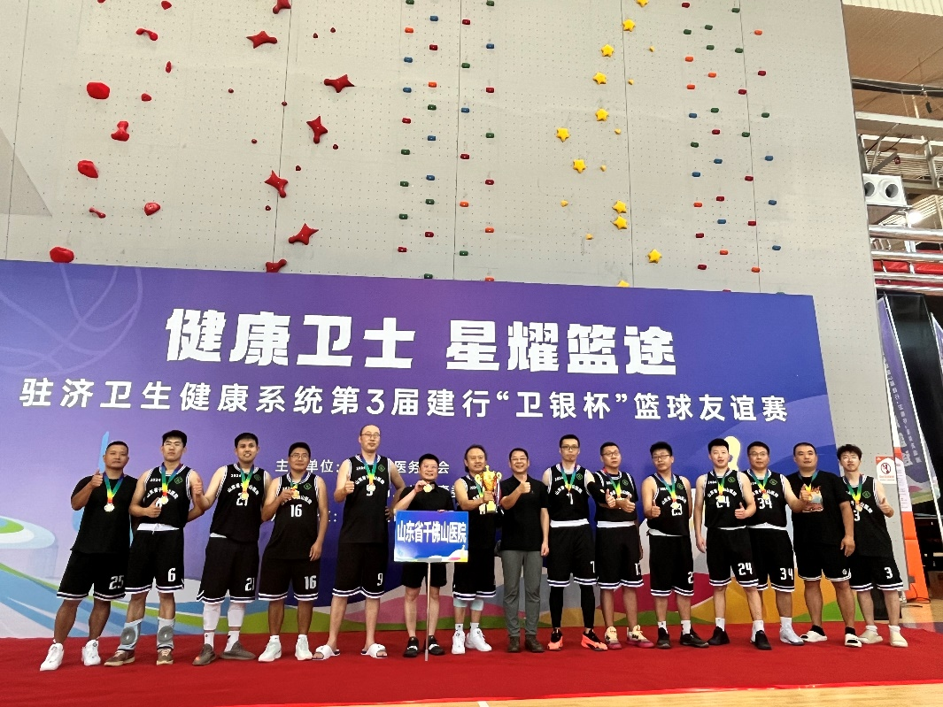 在6-7月份由山东省医务工会和山东省卫生健康委员会直属机关工会联合主办的驻济医疗机构“卫银杯”篮球比赛中,我院篮球队表现出色,在强手如林的竞争中荣获亚军。