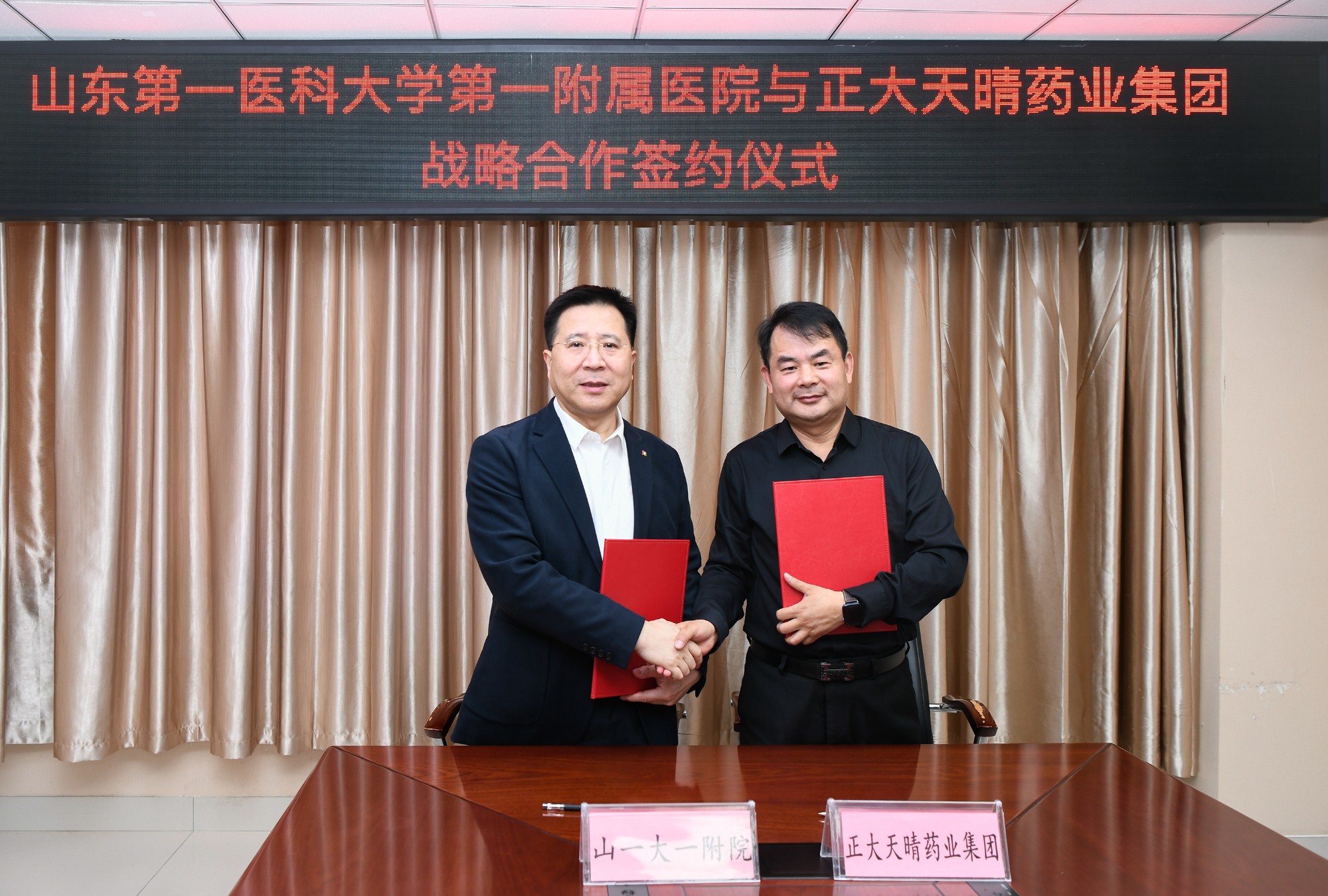 王训强在致辞中向医院长期以来的支持表示衷心感谢。他表示,此次与山一大一附院正式达成战略合作,是双方深化医企协同、共促健康事业发展的重要里程碑。未来,正大天晴将以此次签约为契机,充分发挥企业在药物研发、产业转化、市场服务等方面的优势,依托医院的临床资源、科研平台和专业人才支撑,在临床研究、药学服务、学科建设、成果转化和人才培养等方面开展深度合作,携手探索医疗与医药融合的发展新模式,共同推动优质临床资源与创新药物惠及更多患者。