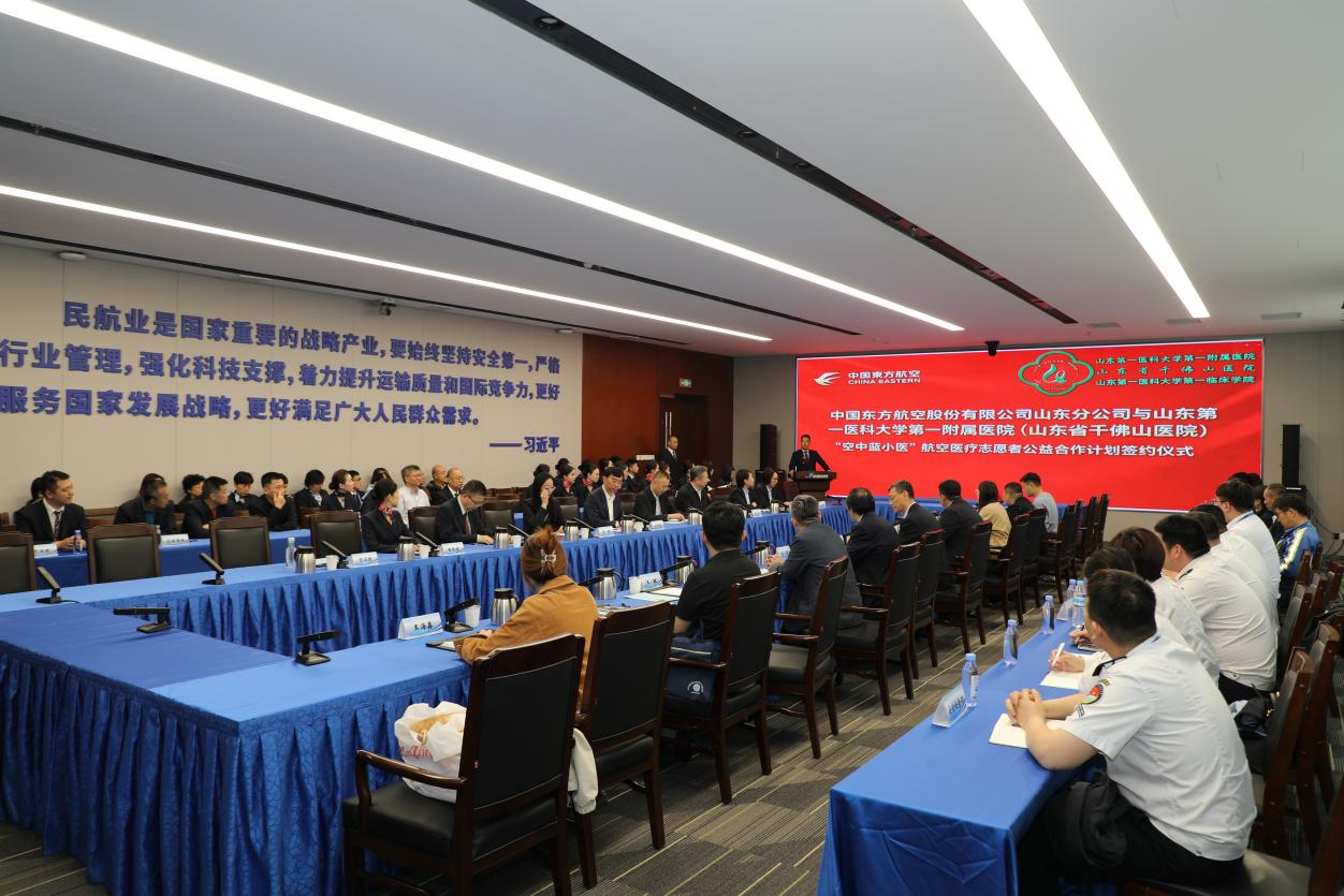此次签约,是东航“空中蓝小医”项目在山东落地的首次布局,山一大一附院是该项目在省内签约的首家医疗机构,也是医院公益服务模式的一次全新拓展。孙志坚在签约仪式上表示,“空中蓝小医”签约项目是将医院优质医疗资源与东航的航空服务网络深度互补的务实之举,更是公立医院主动担当社会责任、拓展公益服务边界的生动体现。未来医院将组建专属“空中蓝小医”志愿者队伍,实现专业医疗救助的快速响应和精准对接,为广大旅客的安全出行保驾护航,让公益温度传递至万米高空。