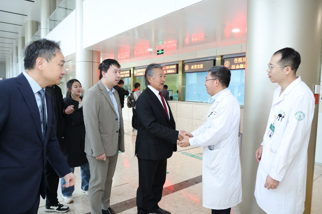 在器官移植中心副主任李自强和张晓明的陪同下,John Fung教授参观了医院肾移植及肝移植病房以及移植术后监护室。李自强及张晓明分别介绍了近年来医院肝脏移植及肾脏移植的进展。医院器官移植的规模增长以及移植术后的精细化管理、微创诊疗技术、临床及科研队伍的建设、多学科协作等方面,都给John Fung教授留下了深刻印象。