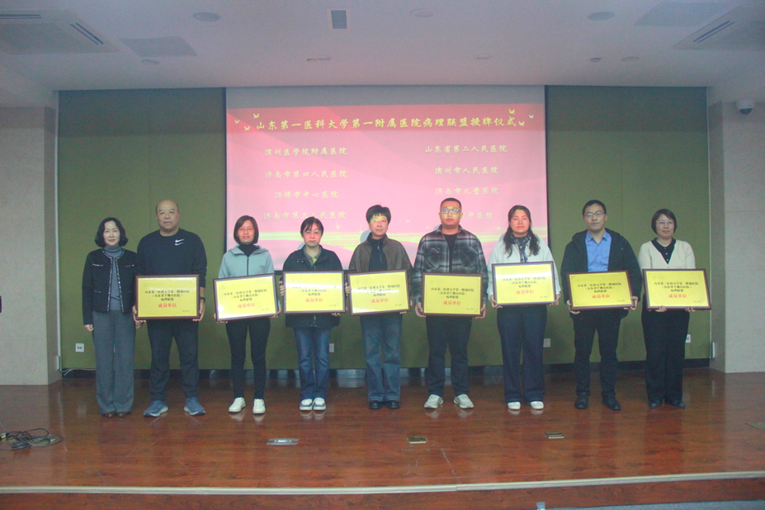 校(院)党委委员、山一大一附院(省千佛山医院)党委书记孙志坚,医院副院长许翠萍,医院病理科学科带头人孙青、病理科副主任崔晶出席会议。来自全省各地市的73家联盟成员单位病理科主任、相关医疗机构负责人共计80余人齐聚一堂,共同见证病理联盟的成立,共商病理学科发展大计。