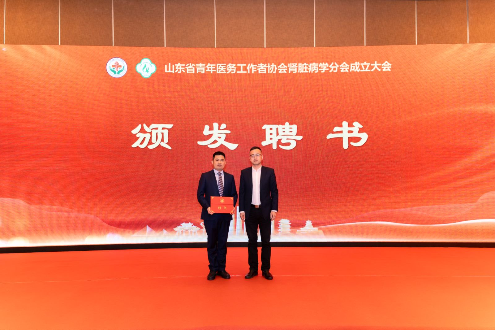 同日,山东省青年医务工作者协会肾脏病学分会也正式组建。医院肾内科刘以鹏主任医师当选为首届主任委员,王尊松被聘为首届名誉主任委员。该分会致力于凝聚全省肾病领域青年骨干力量,构建学术交流、能力提升与科研创新的核心平台,为学科长远发展储备英才。