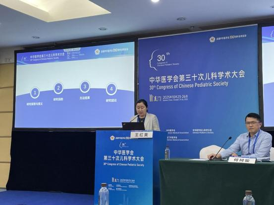 本次大会以“融合、创新、发展”为主旨,是我国儿科领域最具影响力的学术盛会。在备受瞩目的“大会发言”环节,顾艳副主任医师代表王红美主任汇报了《儿童原发性骨髓衰竭综合征的鉴别:早期临床与实验室特征的回顾性分析》,针对儿童骨髓衰竭的临床诊断难题,分享了科室丰富的临床经验与创新见解。李洪娟副主任医师以《基于个体化特征的儿童造血干细胞移植的精准药物治疗模式探索》为题进行了另一场大会发言,全面展示了在儿童造血干细胞移植精准治疗领域的最新探索与实践。