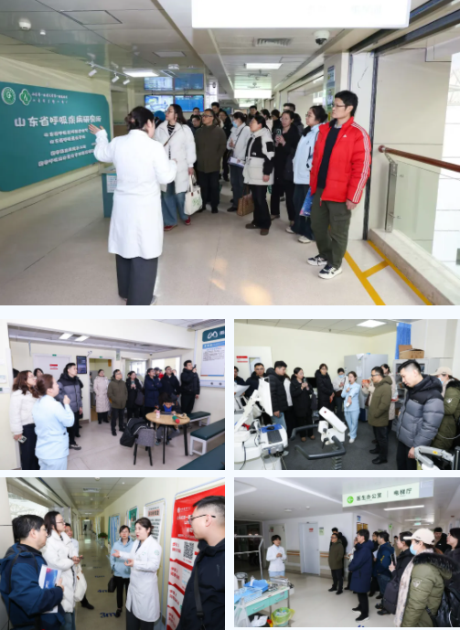 理论结合实际,是本次会议的一大亮点。学术会议结束后,还组织举办了参访环节,全体参会代表前往山一大一附院(省千佛山医院)呼吸与危重症医学科进行实地参访交流。代表们沿着科室精心设计的参访路线,深入走访了呼吸一体化门诊、呼吸专科病房、RICU与呼吸内镜室,就呼吸慢病的管理模式、科室建设经验与院内同仁进行了面对面的深入交流与探讨。