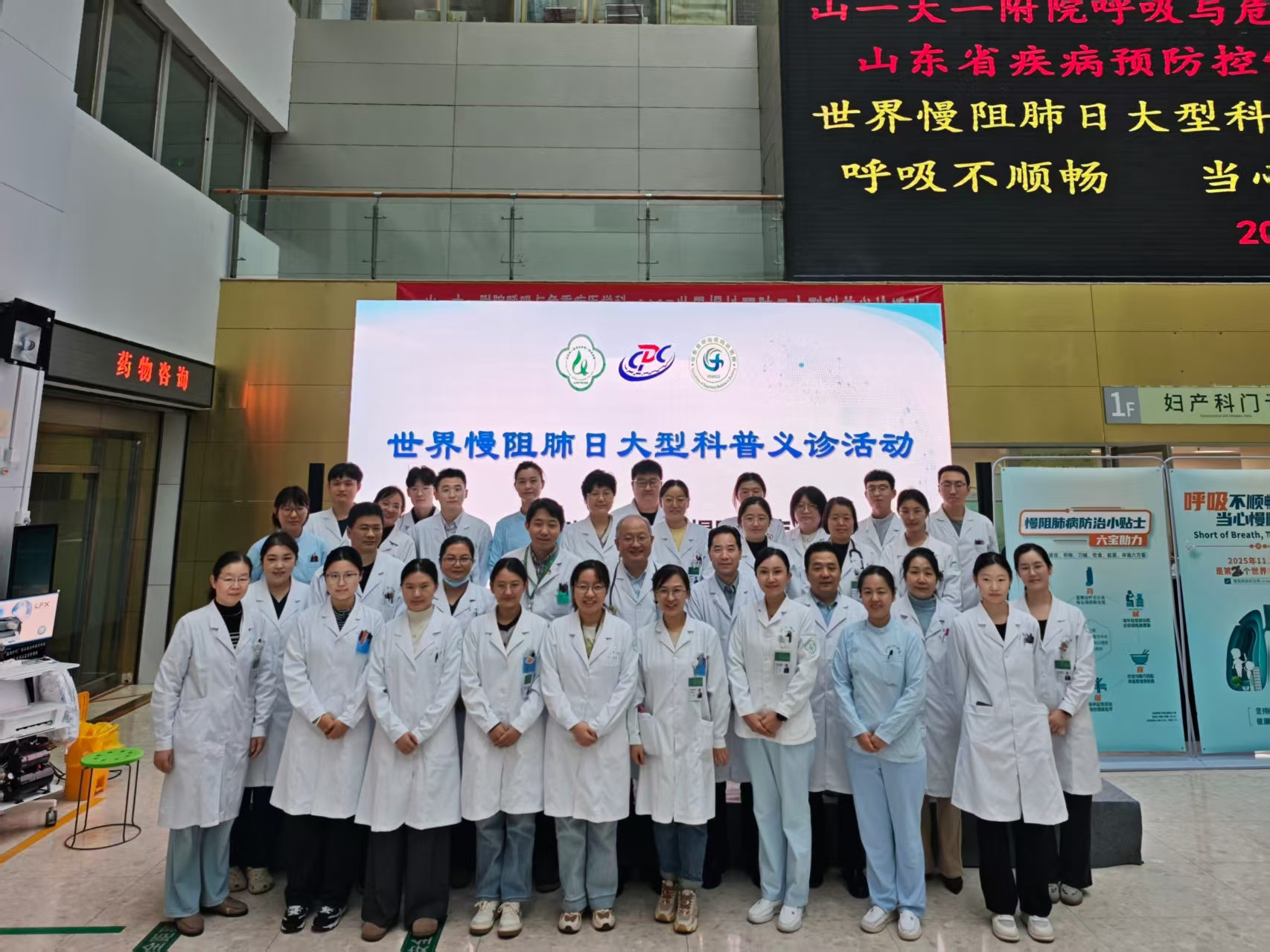 2025年11月19日是第24个“世界慢阻肺日”,今年的主题是“呼吸不顺畅,当心慢阻肺”。当日上午,呼吸与危重症医学科与山东省疾病预防控制中心在我院门诊楼前广场共同举办了“关注慢阻肺,畅享自由呼吸”大型科普义诊活动。活动旨在提升公众对慢性阻塞性肺疾病的认知,推动早防早诊早治,守护群众呼吸健康。