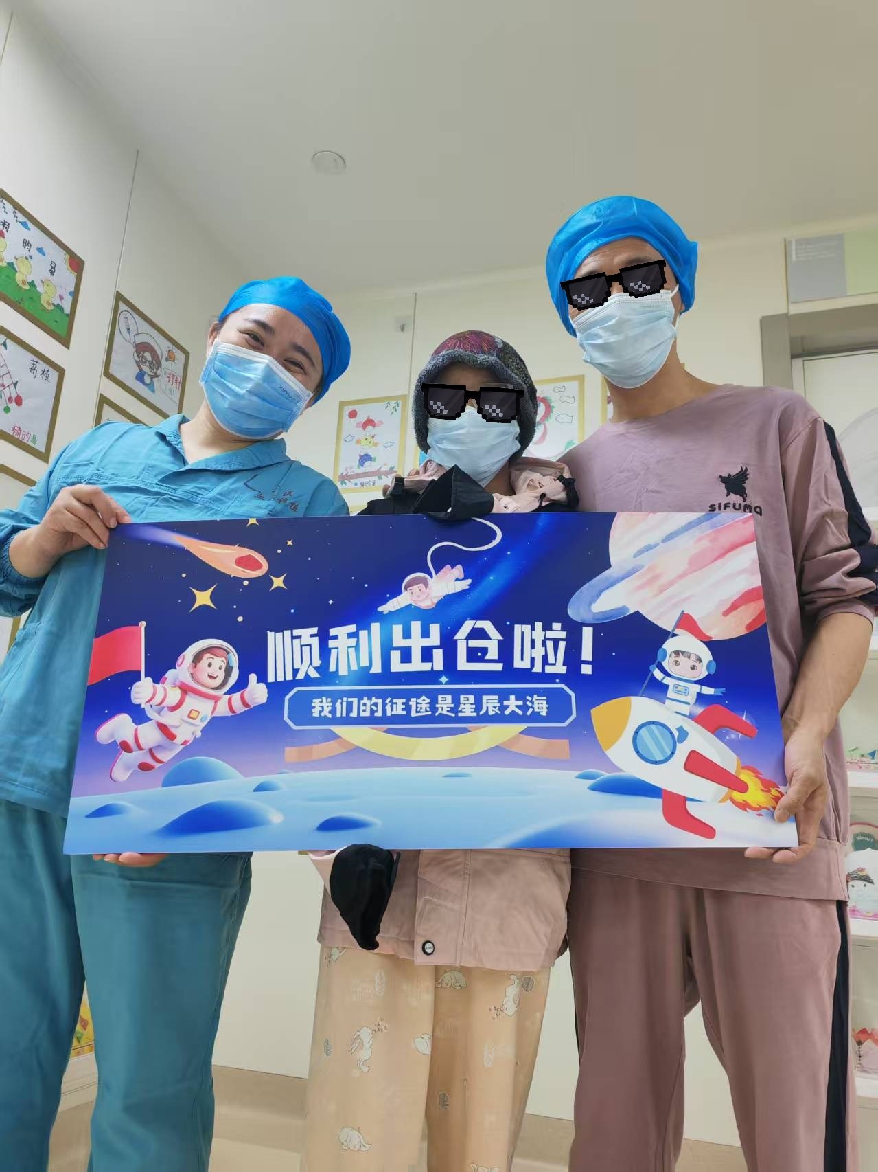 在移植仓内的一个多月里,感谢王主任带领的医师团队和张素素护士长带领的仓内护理团队全天候的精心守护。孩子吃饭、吃药、运动,甚至每一个微小的指标波动,她们都盯着。她们不仅是护理,更像是在疼爱自己的孩子。每一次隔着玻璃窗的专业指导,每一句鼓励的话语,都支撑着女儿熬过了最难的细胞生长期。