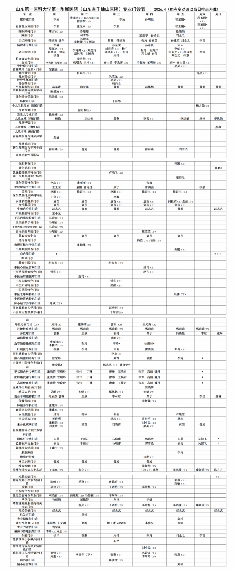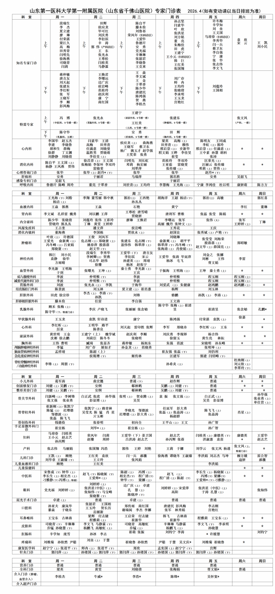 专家门诊表-门诊排班-就医指南-就医版-山东第一医科大学第一附属医院(山东省千佛山医院)【官方网站】